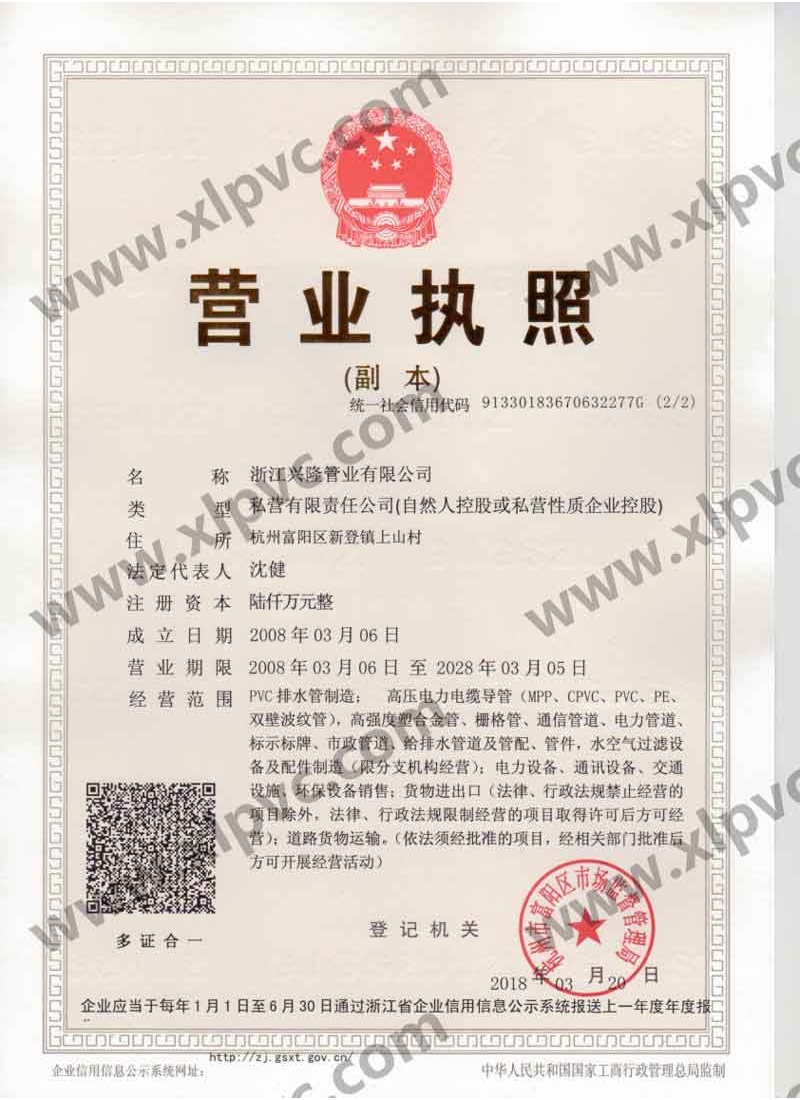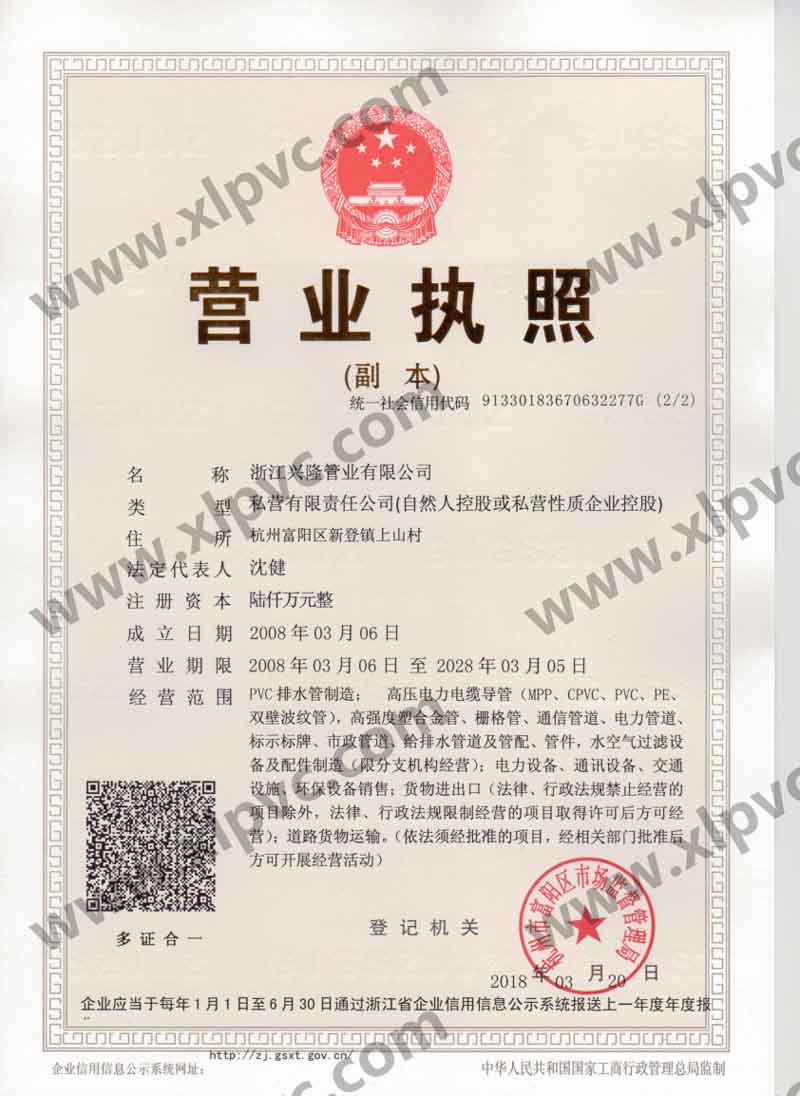 浙江興隆管業(yè)有限公司位于杭州市富陽(yáng)區(qū)(杭州第九新區(qū)),坐落在新登鎮(zhèn),相距杭州僅60公里,水、陸、空交通運(yùn)輸十分便利。浙江興隆管業(yè)有限公司前身為富陽(yáng)興隆塑料制品廠,成立于1992年,2008年改名浙江興隆管業(yè)有限公司,數(shù)十年來,公司一直至力于管道的生產(chǎn),目前公司擁有國(guó)內(nèi)先進(jìn)的CPVC保護(hù)管生產(chǎn)線,HPVC()雙壁波紋管生產(chǎn)線,多孔管生產(chǎn)線,玻璃鋼電纜保護(hù)管生產(chǎn)線、MPP電纜保護(hù)管生產(chǎn)線。生產(chǎn)的主要產(chǎn)品有:CPVC電纜保護(hù)管、MPP電力電纜保護(hù)管(頂管)、高強(qiáng)度塑合金管、HDPE給排水管、HPVC()雙壁波紋管、玻璃鋼電纜保護(hù)管、埋地通信用的PVC-U多孔管、PE直壁管、PVC-U雙壁波紋管、梅花管等,年生產(chǎn)能力達(dá)20000萬米。